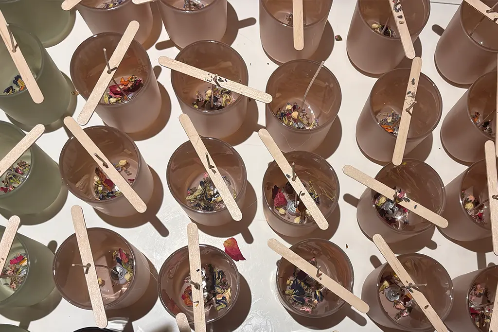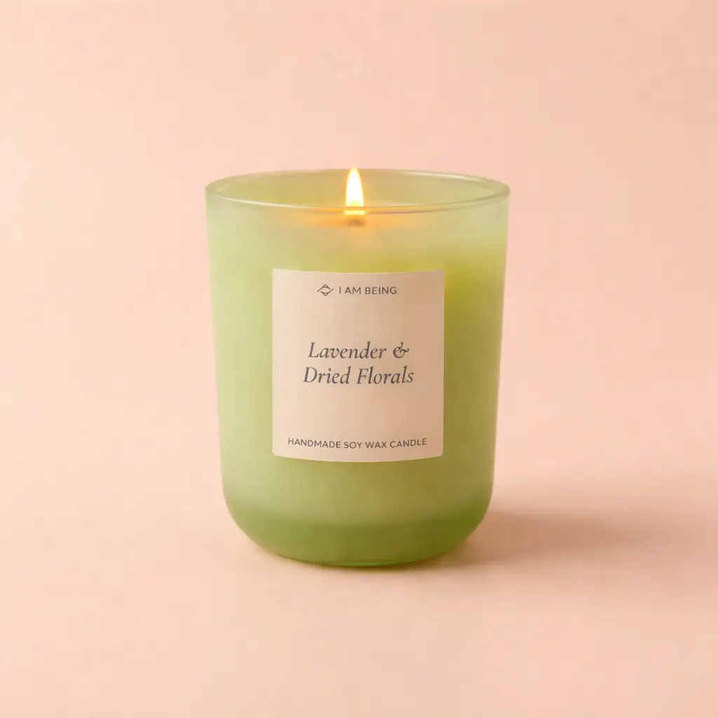 These candles are handmade using clean-burning soy wax, dried flowers, and pure essential lavender oil. Every element has been blessed with palo santo with an intention of wellbeing at the heart.